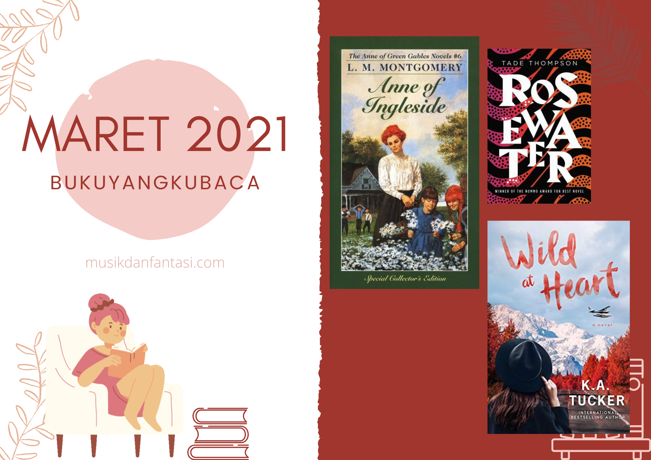 Sekiann buku-buku yang aku baca di bulan Februari lalu. Setengahnya adalah buku lanjutan seri yang pernah kubaca sebelumnya dan masih ada lanjutannya, tapi sepertinya tidak akan aku lanjutkan lagi sayangnya. Alasannya karena aku merasa sudah cukup saja, sih, dan lebih baik membaca buku-buku lainnya lagi. Aku berencana membaca buku dari trilogi Wormwood selanjutnya tapi belum tahu kapan. Aku juga pingin baca buku nonfiksi lagi, tapi bingung buku apa ya yang menarik? Biasanya aku suka yang berbau-bau sejarah atau kehidupan sehari-hari jadi kalau ada saran boleh banget disampaikan.